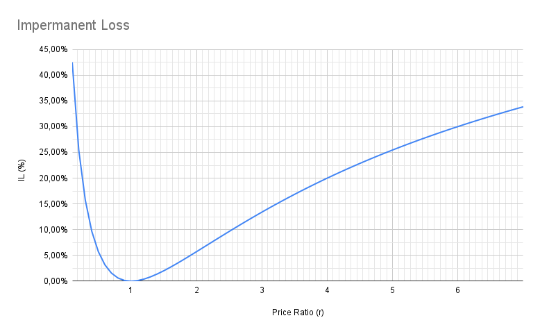 For a 50:50 pool, the Impermanent Loss formula can be computed using the formula below, where r being how much the price of one asset has changed relative to the other.